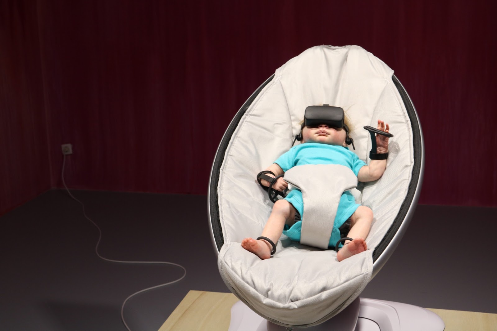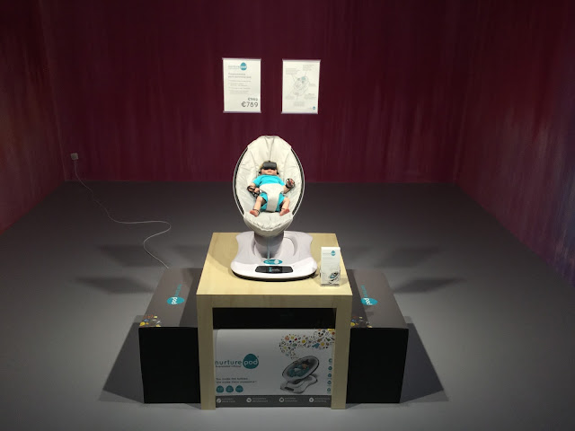 Andrew Curry: What we have here is a very small baby –– not a real baby –– in a little pod surrounded by all sorts of digital stimulus looking after her or his needs. This is a «programmable para-parenting pod», which basically removes the need for parents to get involved, as far as I can tell. It’s a bargain at €789, obviously. What was the brief, Stuart?