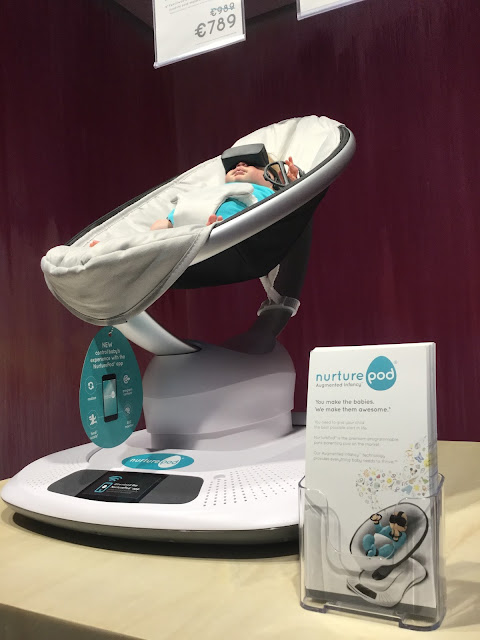 AC: There’s a little tag, «control baby’s experience with the NurturePod App», and a kind of WiFi, Bluetooth-type logo suggesting I can download it. I haven’t actually tried to do that; I’m guessing that bit might not be real?